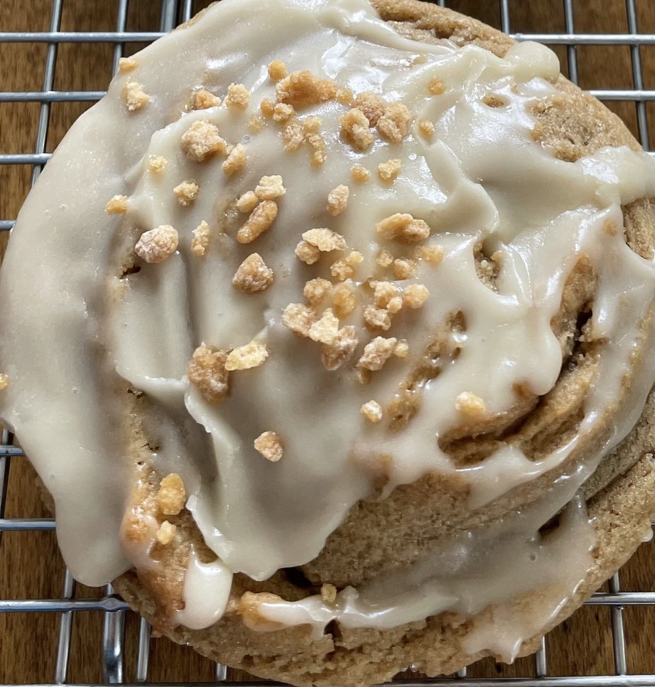 Delight in the cozy embrace of spring with our exquisite brown sugar maple cookie. Each bite offers a symphony of flavors, beginning with a chewy, decadent cookie base infused with the deep richness of dark brown sugar. As you sink your teeth into its soft texture, you're greeted by a luscious maple glaze, drizzled lovingly atop the cookie, imparting a sweet and indulgent taste of the season. But the magic doesn't end there - a sprinkling of maple-flavored sprinkles adds a playful crunch and an extra burst of maple goodness with every bite. Whether enjoyed with a steaming cup of coffee on a crisp fall morning or savored as an evening treat by the fireside, our brown sugar maple cookie promises to transport you to a world of warmth and comfort with every delectable mouthful. Made with local fresh syrup from Tomapo Farm on Storrs Hill.